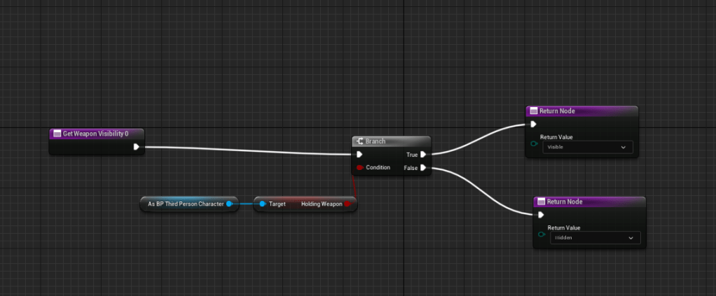 This is the simplest part of the implementation. Essentially, I bind visibility of the icon to the HoldingWeapon boolean on the player character. If the player is not holding a weapon, it will disappear.